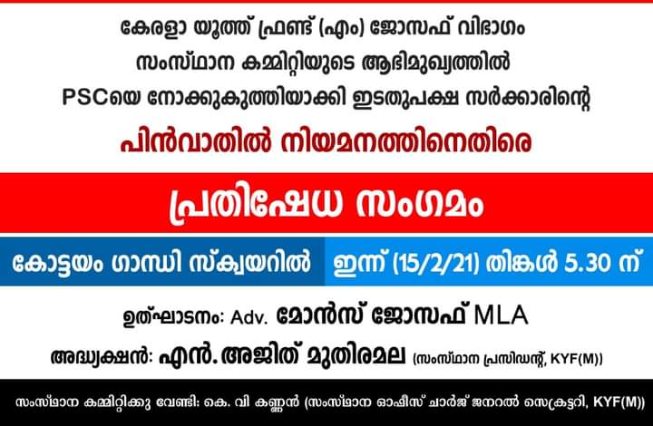 Kerala Youth Front is the youth wing of Kerala Congress party.
